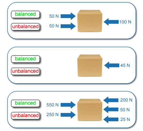 3. Net forces are unbalanced when force in one direction is greater than force in the opposite direction.