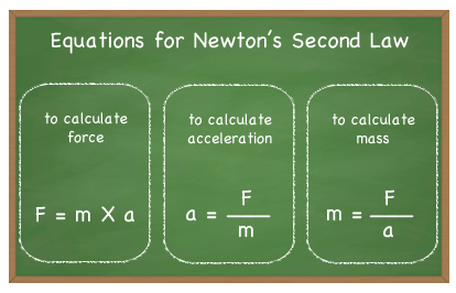 There are three different formulas associated with Newton's second law. Select the buttons to see the different formulas.