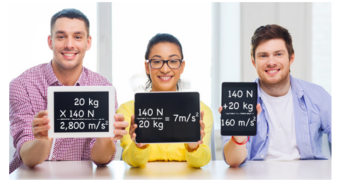 If an object has a force of 56 N and an acceleration of 7 m/s2, the mass is_______