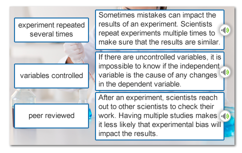 hypothesis | arrow_right_alt | Alexis discovered her hypothesis was incorrect and presented her findings in a during the science fair. She also began planning a new experiment. |