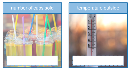 George is measuring how many cups of cold lemonade he sells during the summer. As each cup is sold, he measures the total number of cups sold and the temperature outside. Identify the independent and dependent variable.
