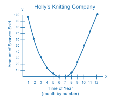 Line graphs allow people to make predictions and analyze trends. For example, Holly can look at the data from her knitting company and analyze when she must make the most scarves for her customers. Looking at this nonlinear graph can help Holly better plan out her resources and time for the next year.