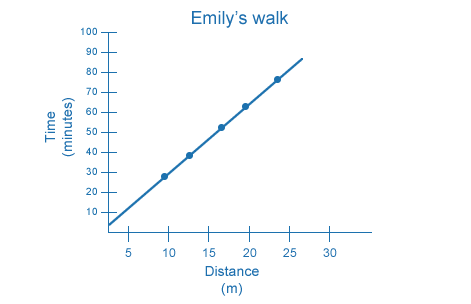 By using the graph, what is the relationship between the distance and the time Emily walk's?