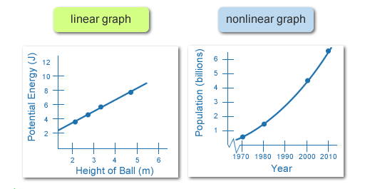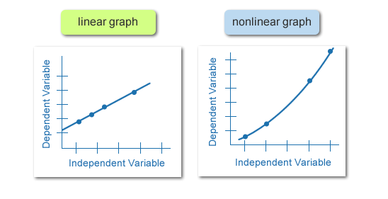 The relationship between the independent and dependent variable does not always produce a straight line. A nonlinear graph is a line graph in which the data points do not fall along a straight line. Sometimes, a smooth curve, rather than a straight line, links the data points that are plotted on a nonlinear graph.