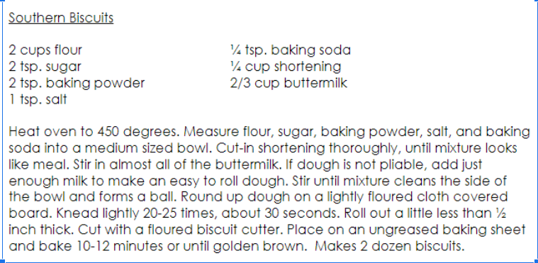In the Southern Biscuit recipe which ingredient(s) are the leavening agents?