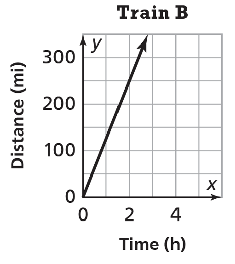 (Level 3) Find the slope of the line for Train B and explain what it means.