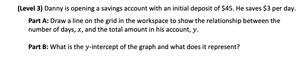 Draw a line in the workspace to show the relationship between the number of days, x, and the total amount in his account, y.