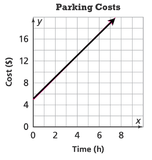 (Level 4) Use the graph below to write an equation and describe in words the cost of parking in the parking garage.