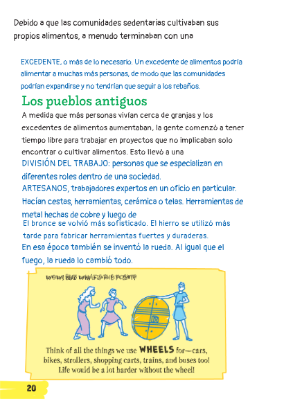 Sedentarycommunities grew their own food which could lead to a [_______]. If you have extra food then people can do jobs that aren't getting food. This leads to a [_______]. People became [_______]. This gave people time to invent new things like metals tools and the wheel!