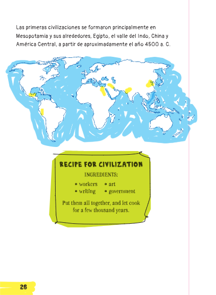 On a poster either by yourself or in a group write about and draw each of the ingredients for your civilization. If you work in a group you will be graded more strictly! Evenly distribute the ingredients among group members.