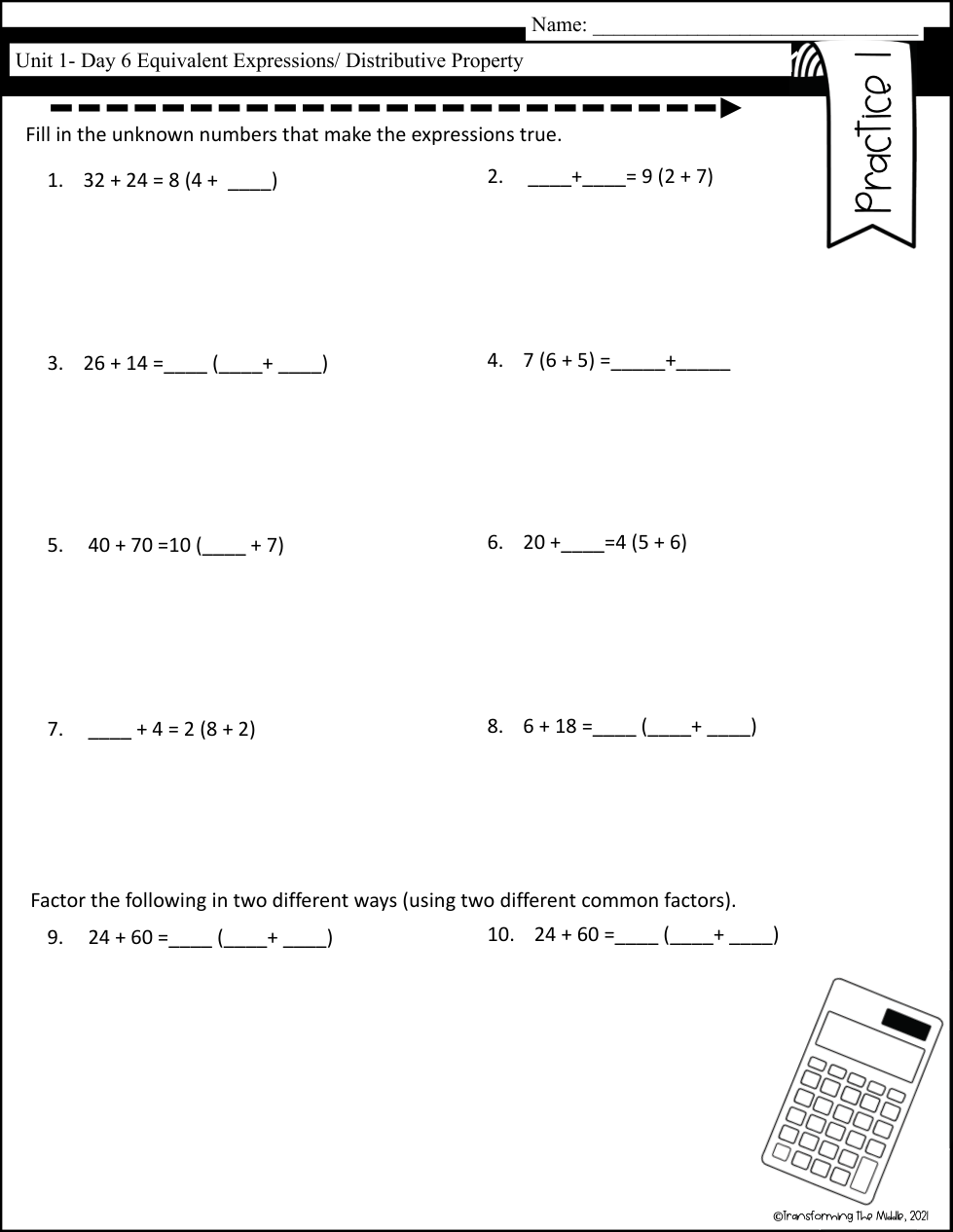 Fri (8/16): (Partner) Equivalent Expressions/Distributive Property