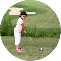Golf is a sport that has contact forces. When the golfer hits the golf ball with her club, the club is making contact with the ball. This affects the golf ball's motion and sends it flying towards the hole.