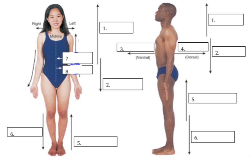 Drag the anatomical Direction terms to the spot on the diagram that best represents it.