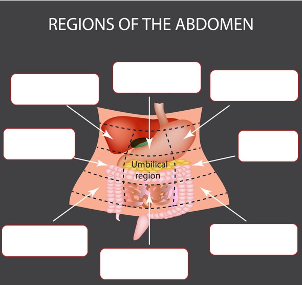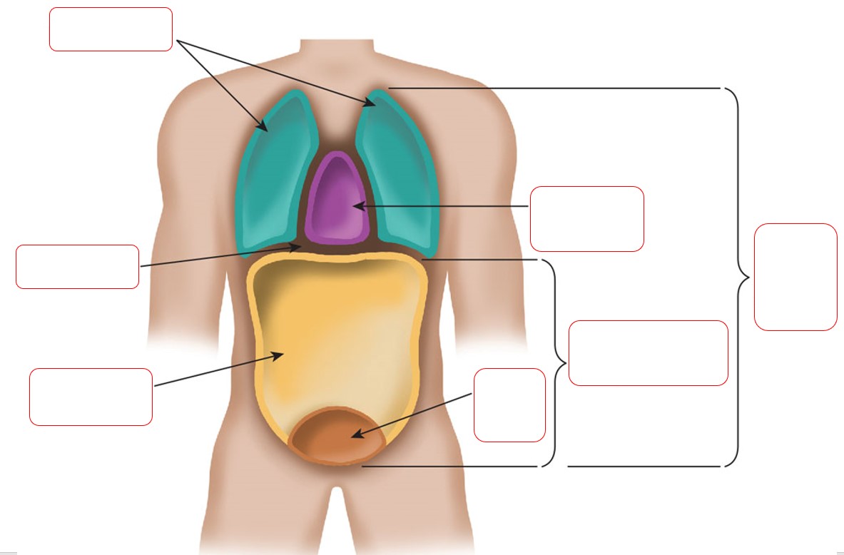 The Ventral Cavity is divided into these regions. Drag and drop the structures and region names into the appropriate box.