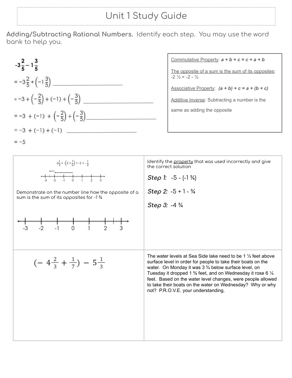 Demonstrate on the number line how the opposite of a sum is the sum of its opposites for -1 ¾
