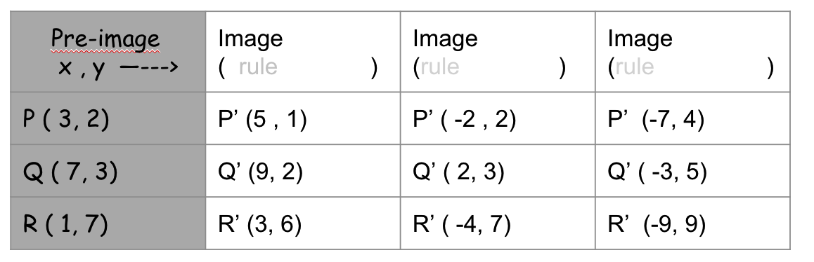 Success Criteria 1: I can map the pre-image to the image to develop the algebraic rule