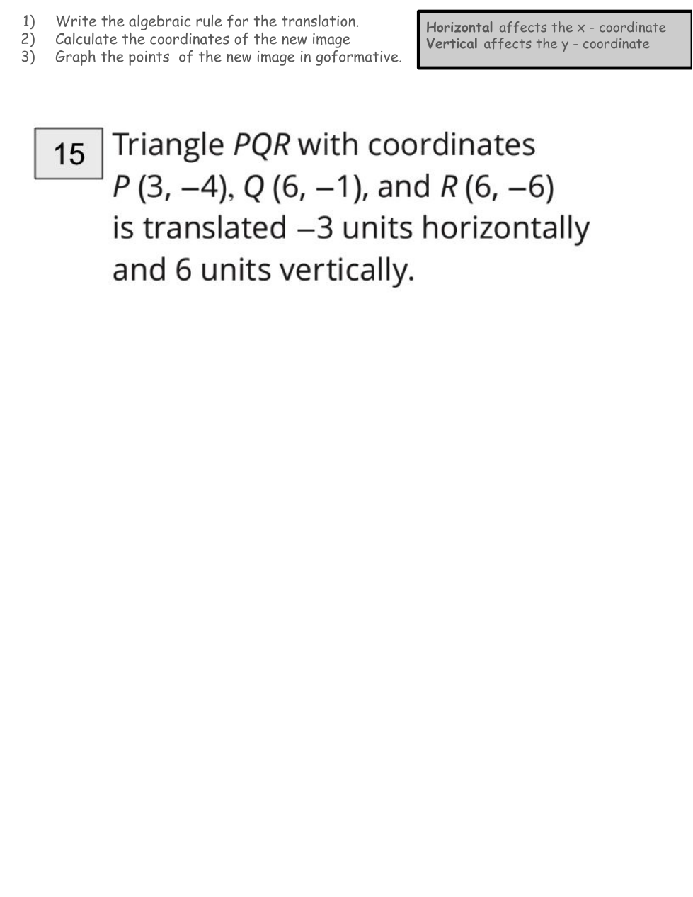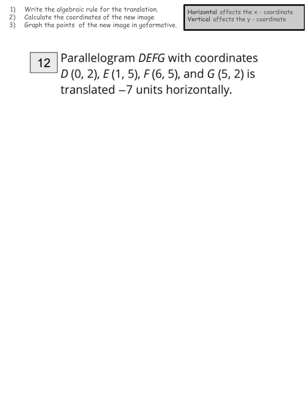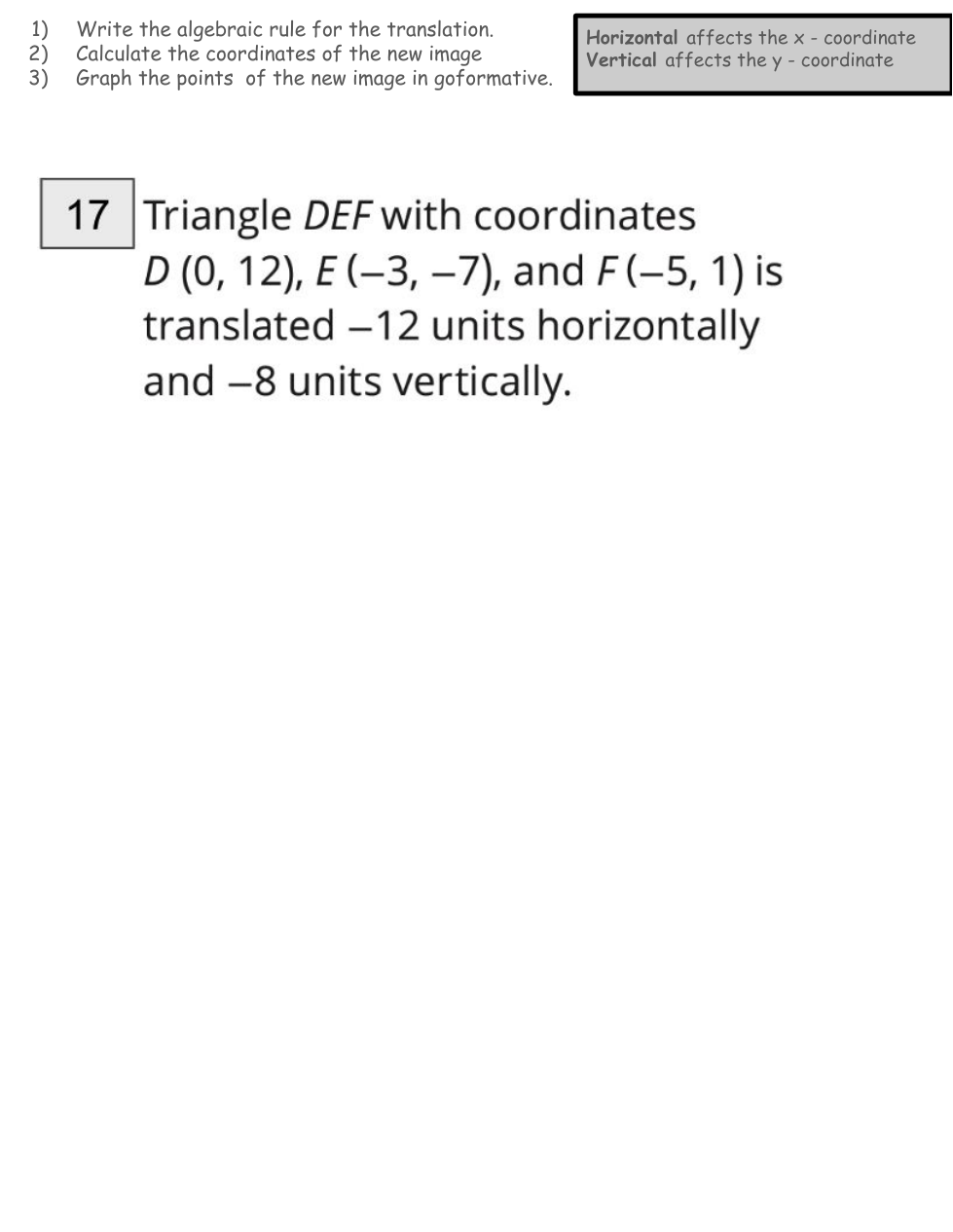 Success Criteria 2: I can write the rule of a translation and calculate the coordinates of the image