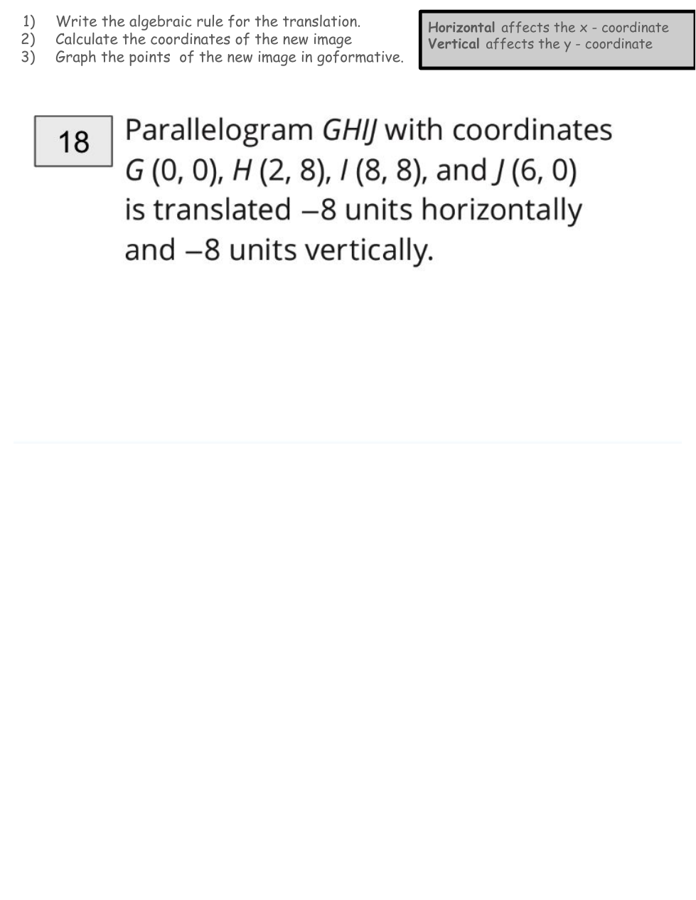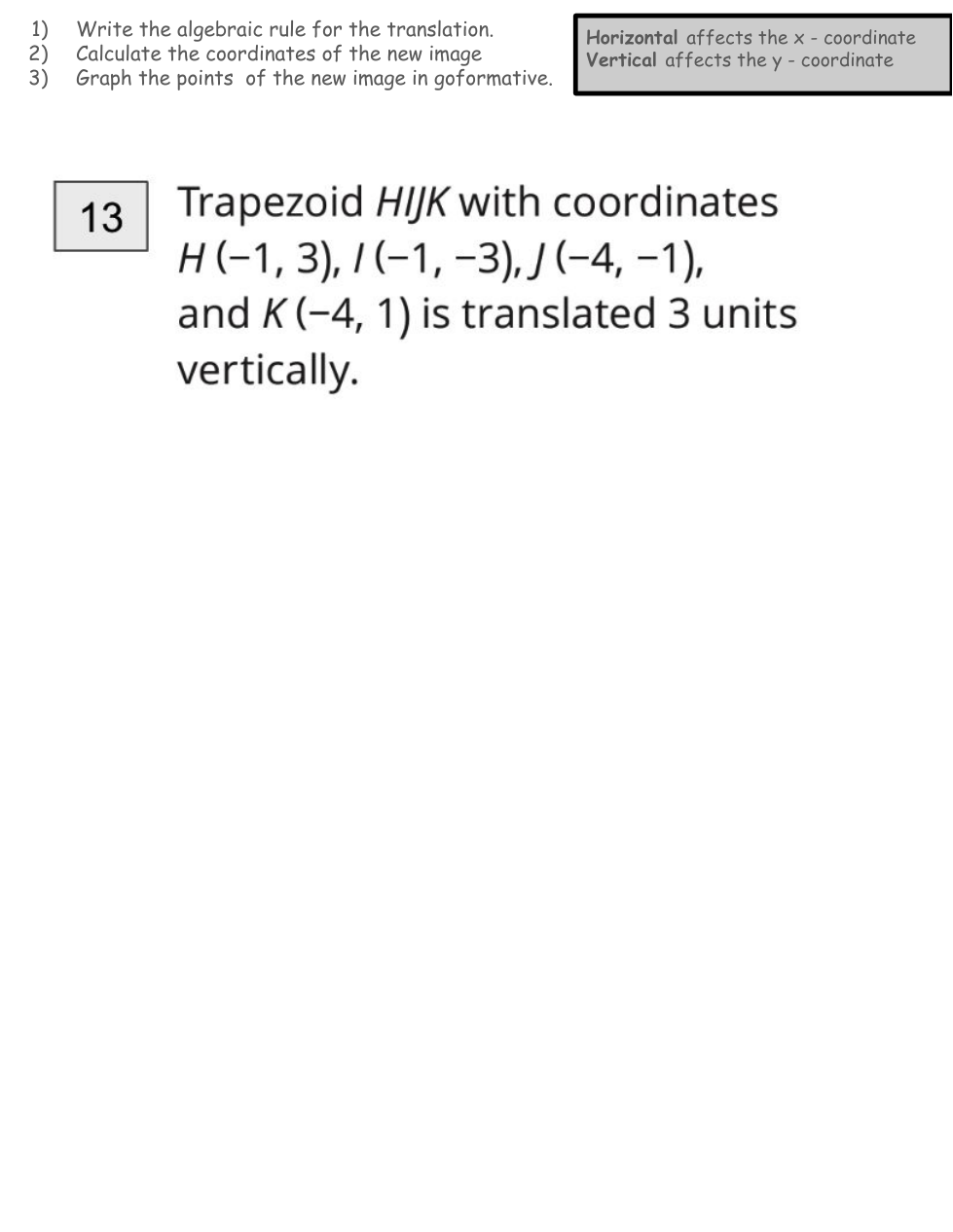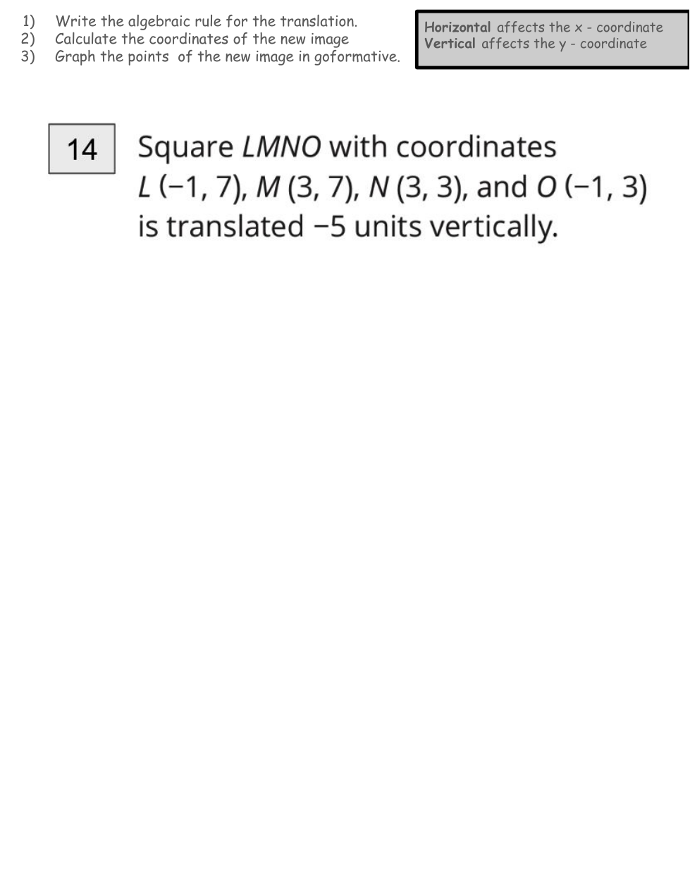 Success Criteria 2: I can write the rule of a translation and calculate the coordinates of the image