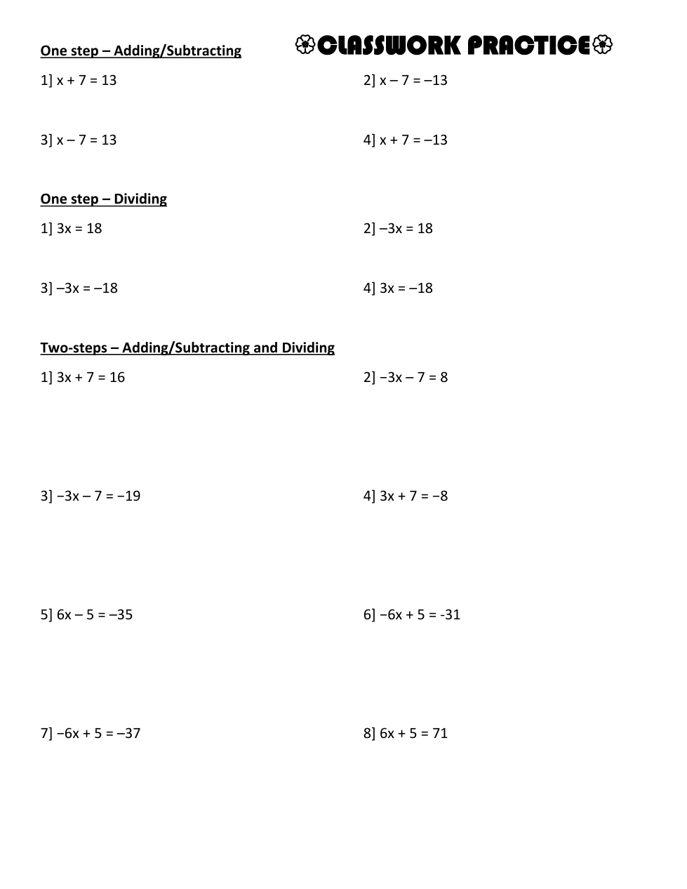 8.19 // Solving One and Two-step Equations