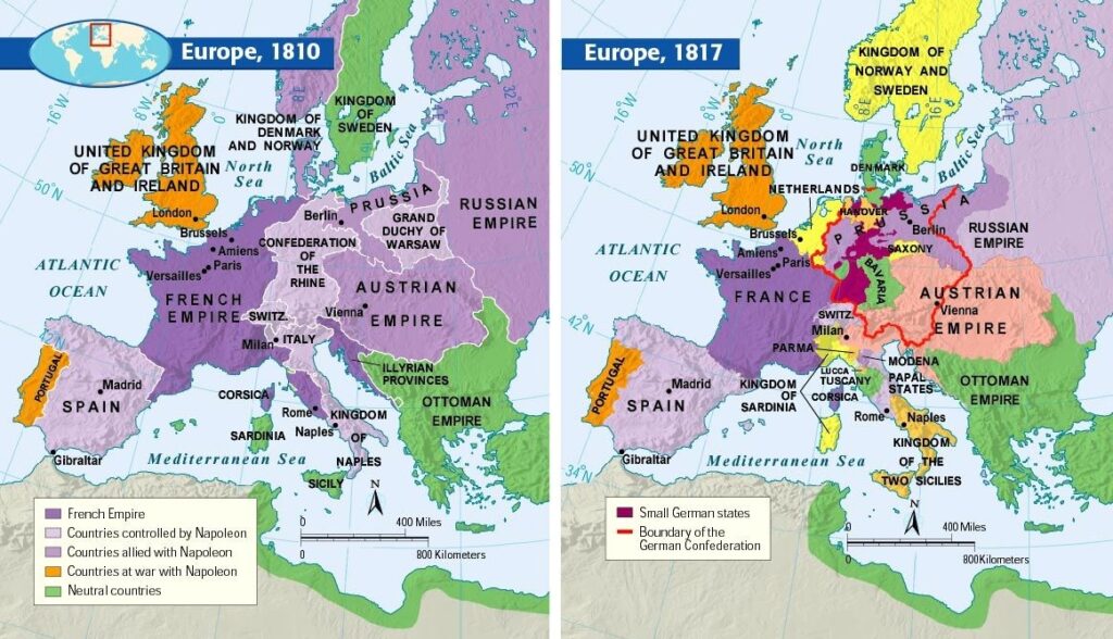 The changes seen in the map below illustrate the success of which philosophy in the early nineteenth century?