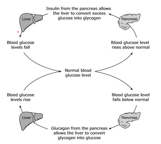 Which two systems work together to detect low levels of glucose and release a hormone to raise the levels back to normal?