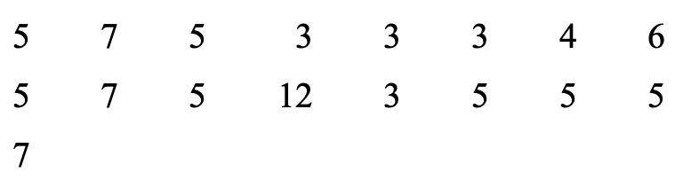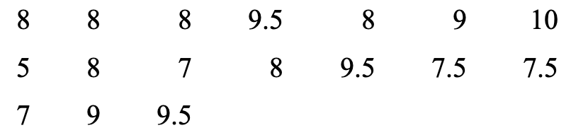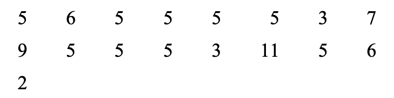 Mode = _______ Median = _______ Mean = _______ Range = _______