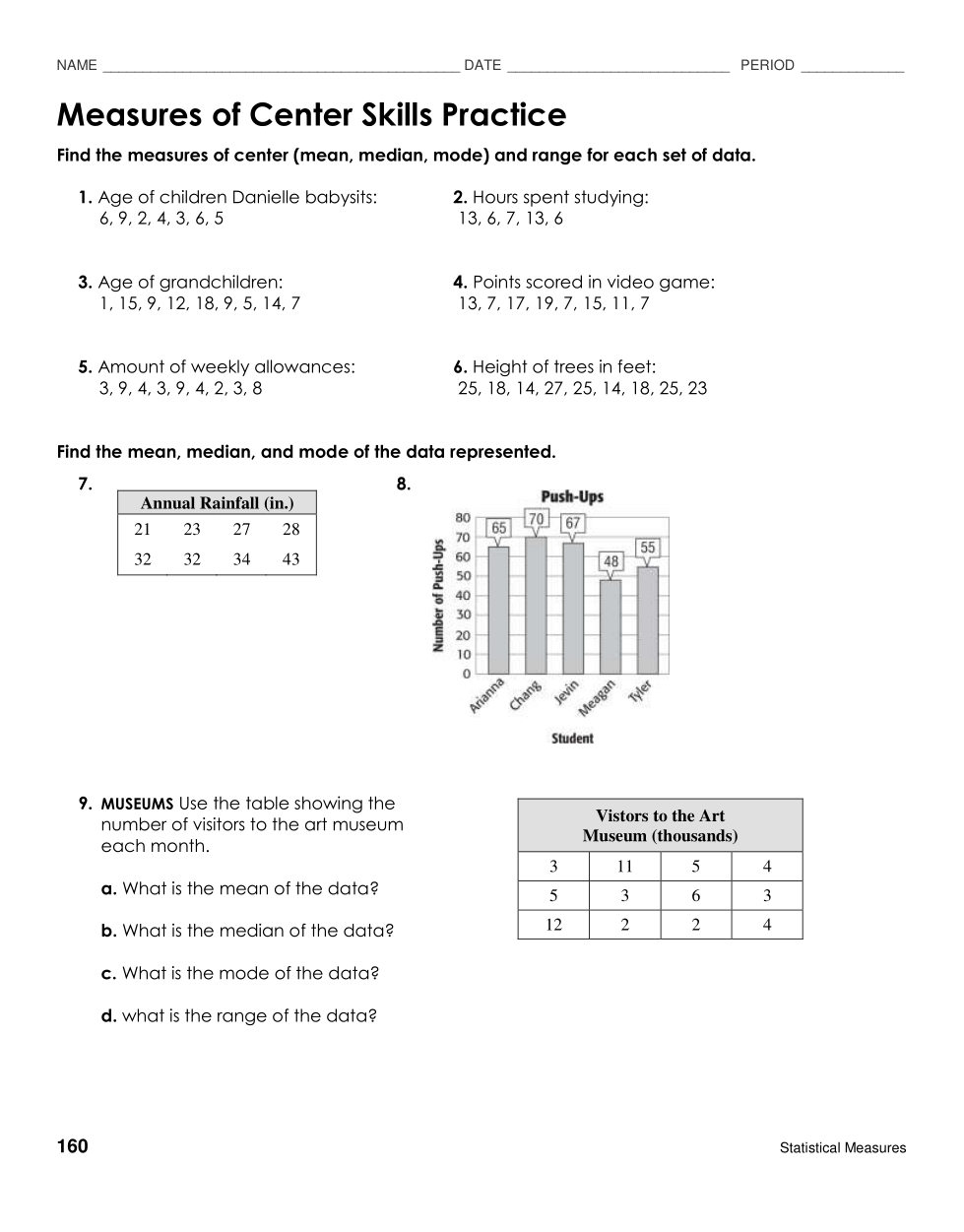 For each answer type in the answer in this order - mean, median, mode, range. For example, the answer to this question is: