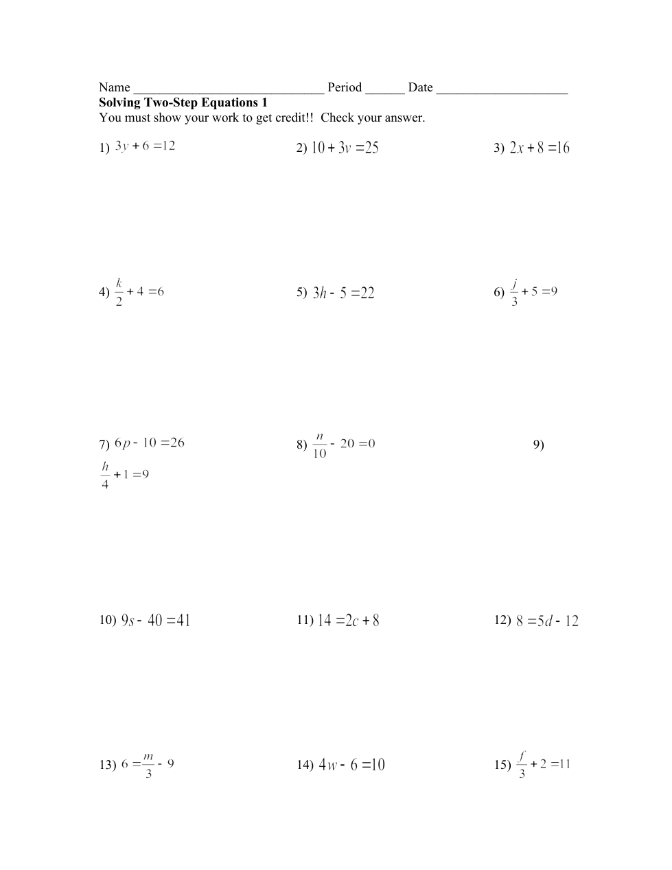 Take a picture of your work to receive credit.
