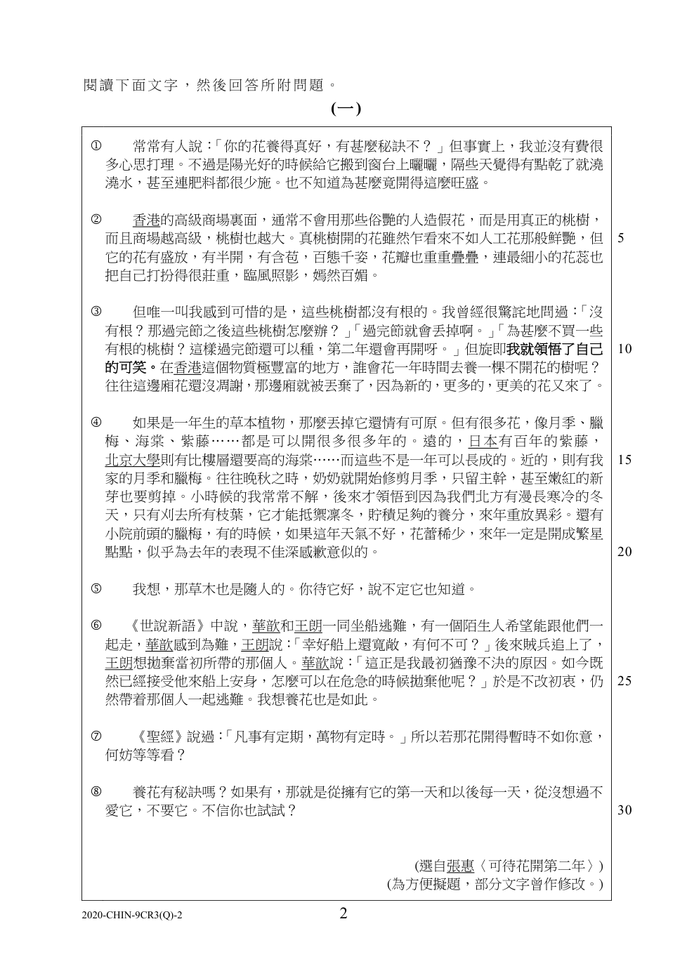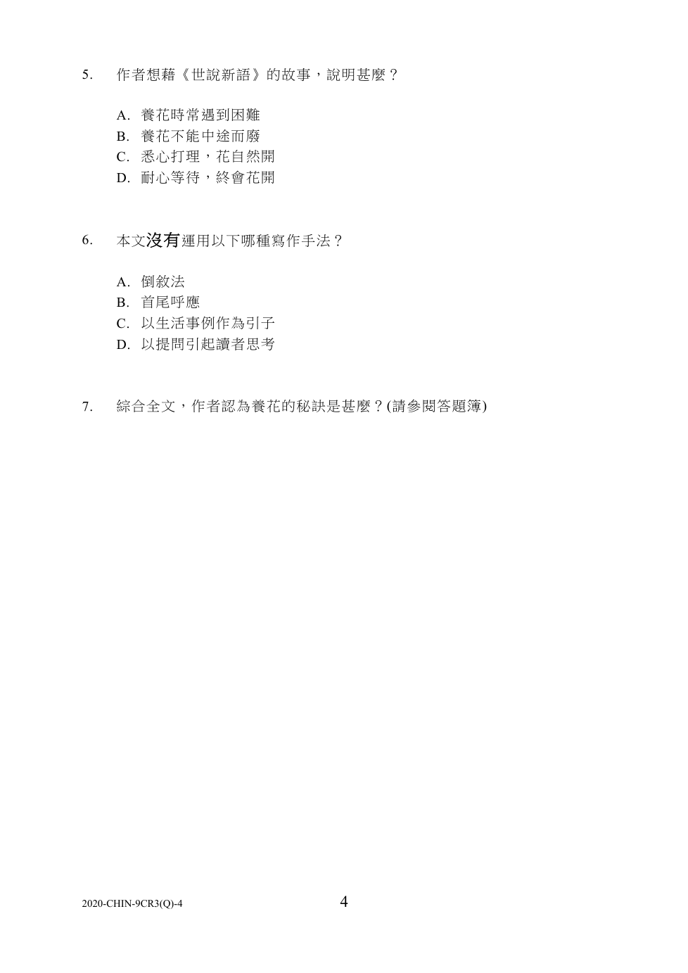 綜合全文,作者認為養花的秘訣是甚麼? (請參閱答題簿)