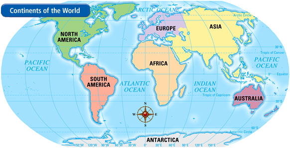 These top and bottom halves of the Earth are called the Northern and Southern Hemispheres. “Hemi” means half. Is Asia in the northern or southern hemisphere?