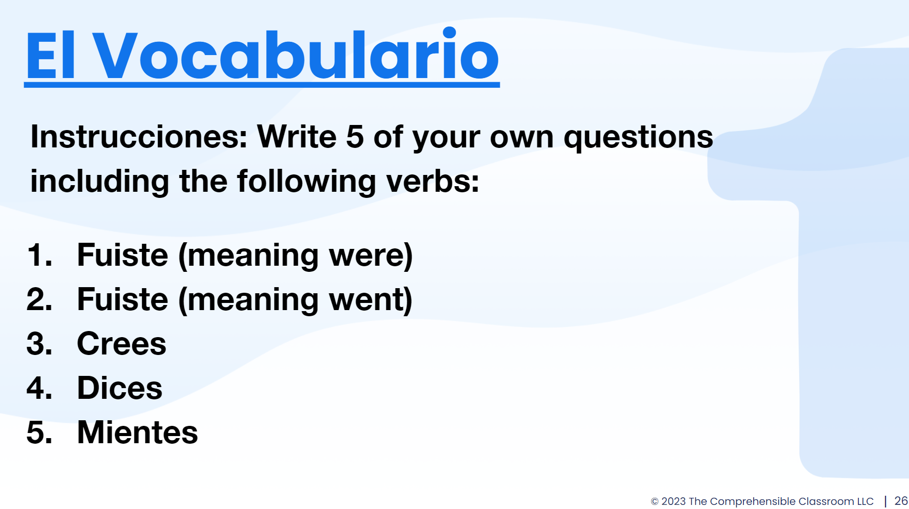 (fue, fuiste, fui, yo no fui, miente, dice la verdad, cree)