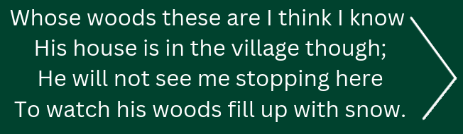 "Two roads diverged in a yellow wood, And sorry I could not travel both And be one traveler, long I stood And looked down one as far as I could..."