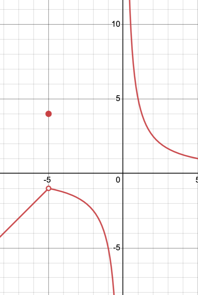 For the above piecewise function, what kinds of discontinuities are on the graph, from left to right