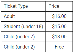 The admission prices to an art museum are shown in the table below.
