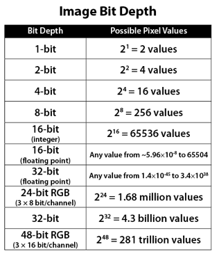 Bit Depth | arrow_right_alt | The total number of pixels in an image, expressed as width x height |