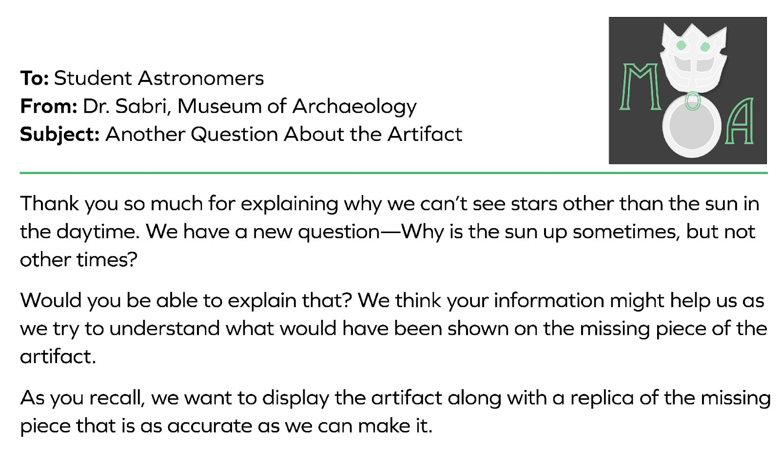 DIRECTIONS: Read the email from Dr. Sabri at the Museum of Archaeology to find out what the Museum wants us to investigate next.