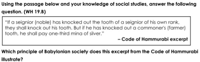 This excerpt shows that Hammurabi’s Code continues to affect us today in its belief that —