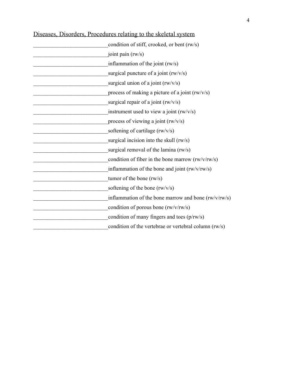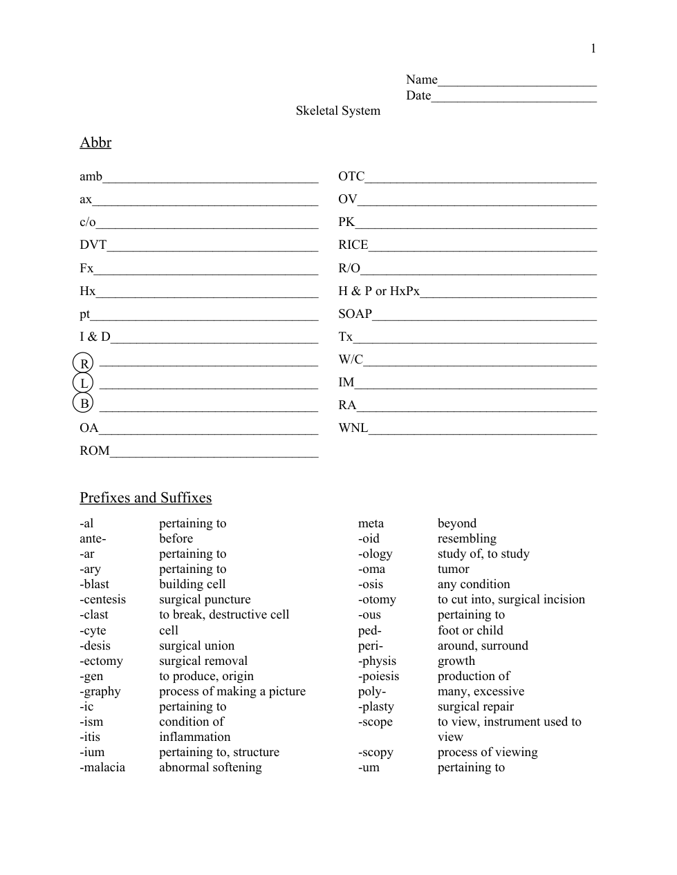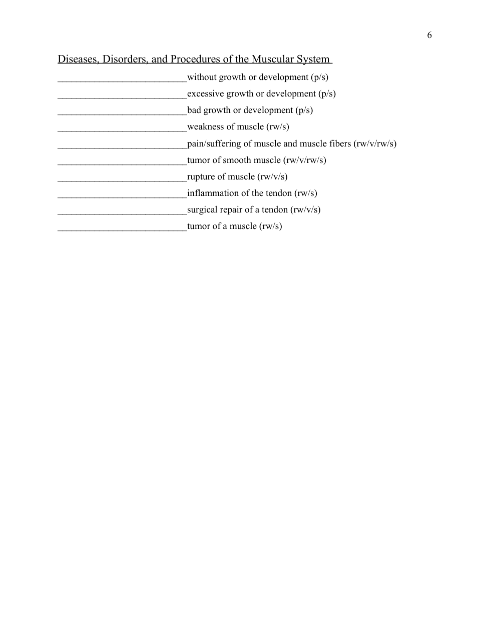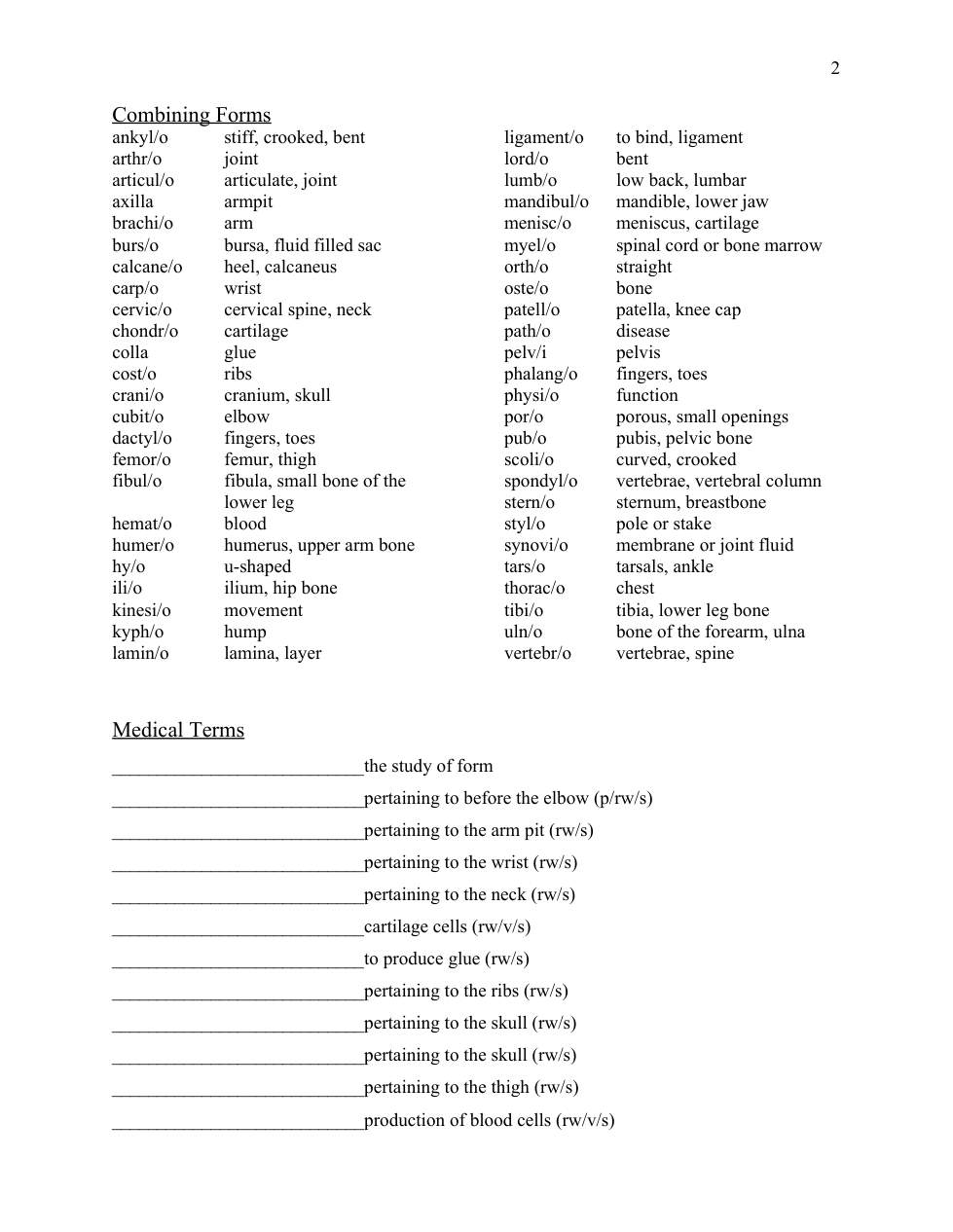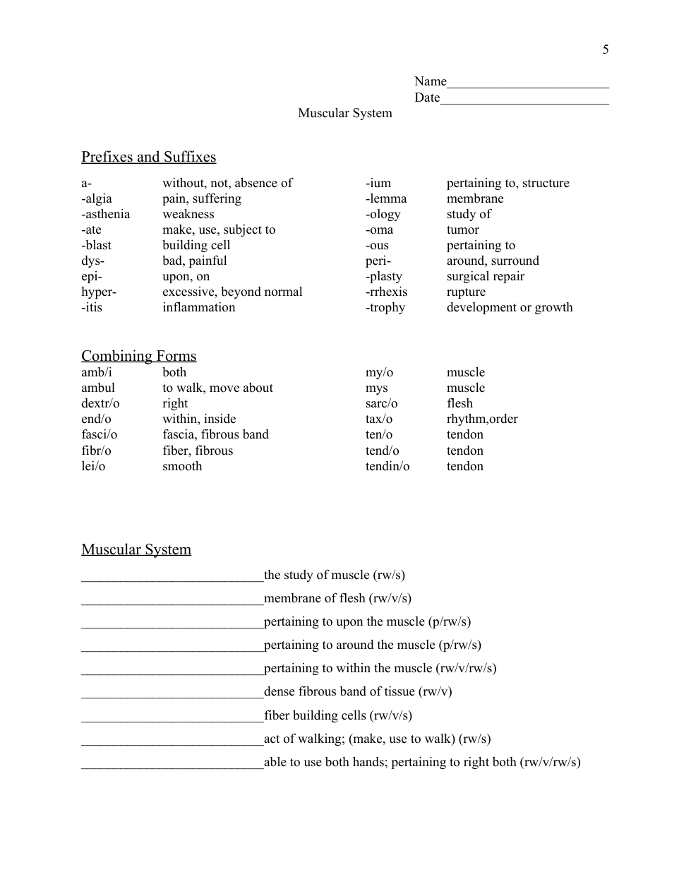 Musculoskeletal worksheet