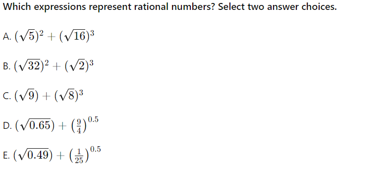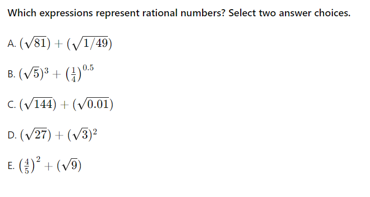 RN.1 Rational Numbers with exponents and sqrt