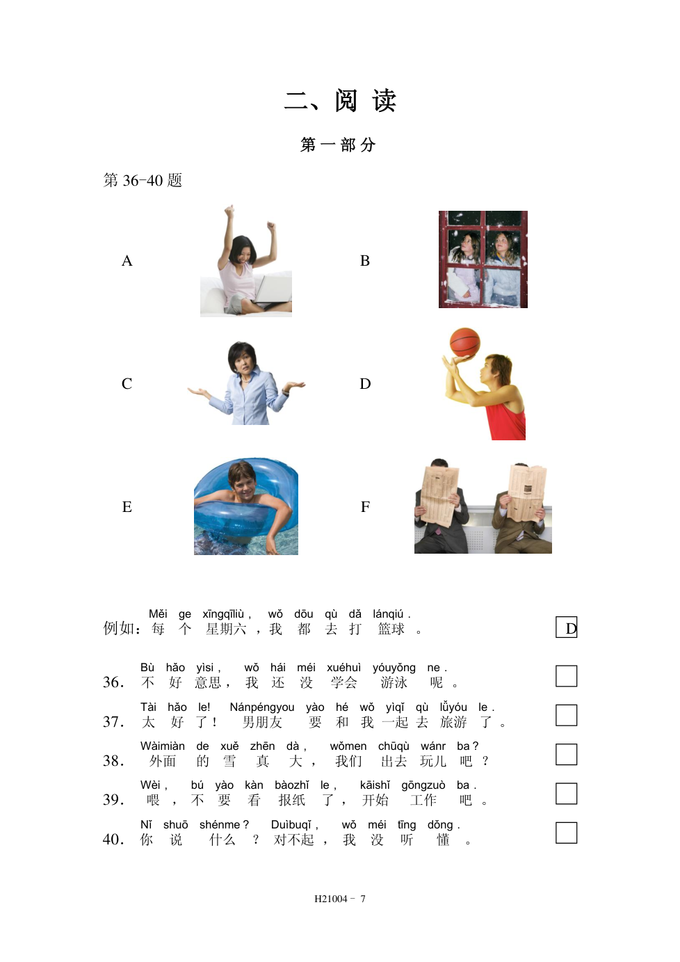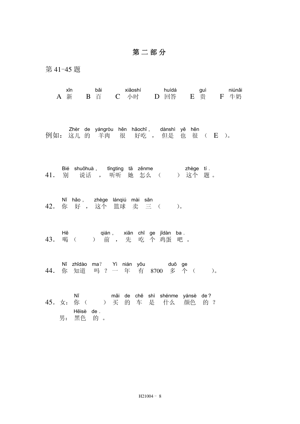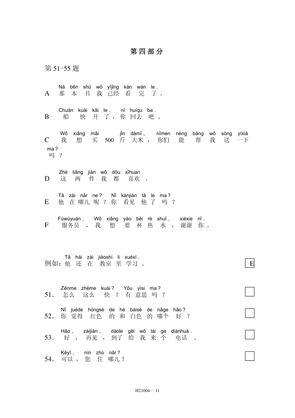 HSK2(21004) 阅读