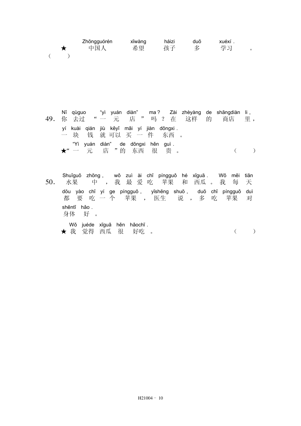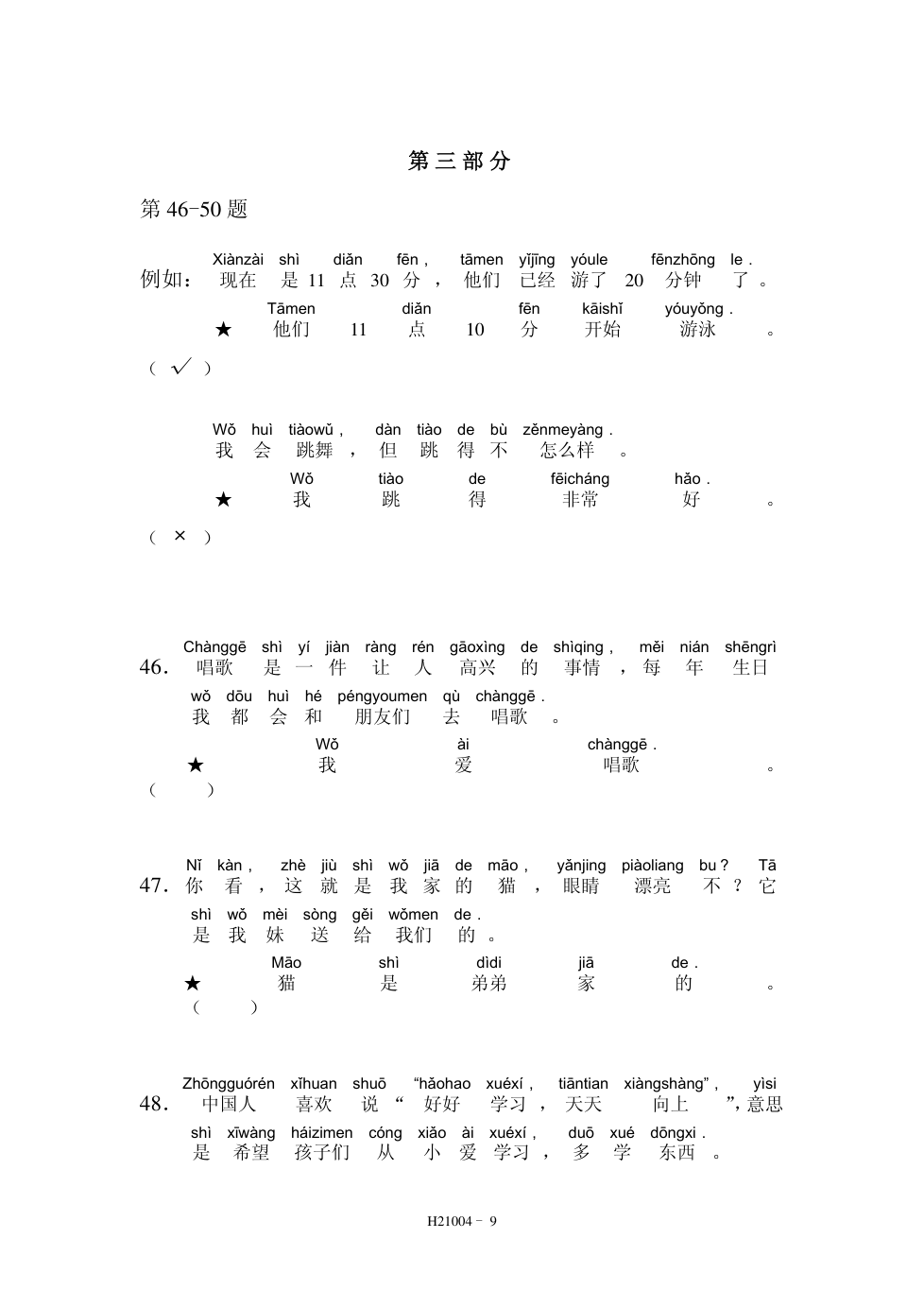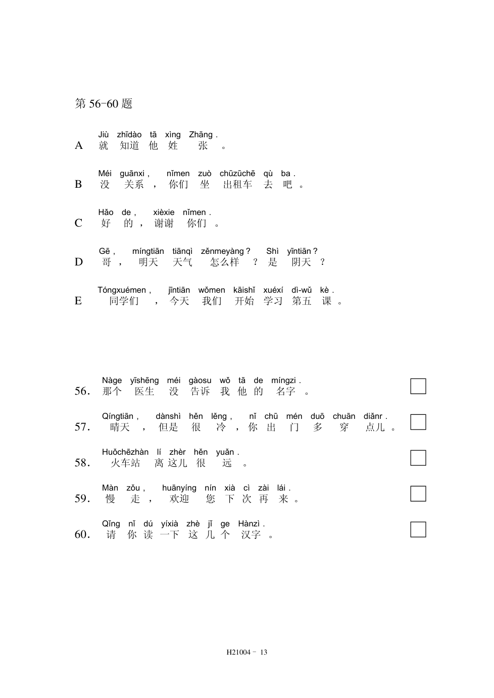 HSK2(21004) 阅读