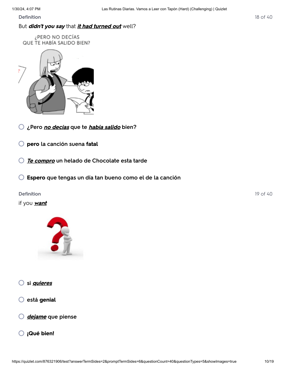 ¿Pero no decías que te había salido bien? | arrow_right_alt | a song that Mr. Alvarez taught us |