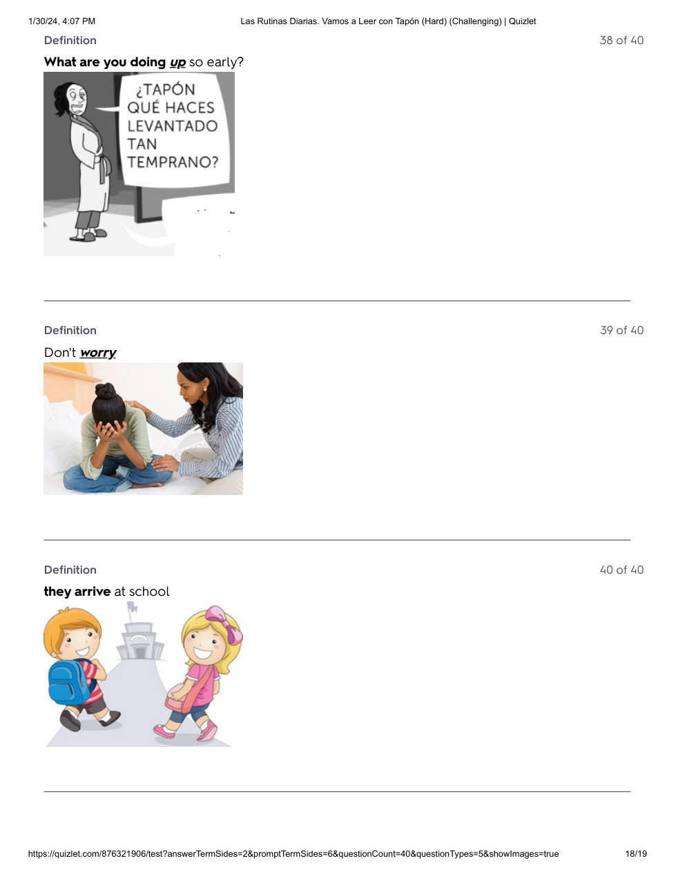 es sobre rutinas diarias | arrow_right_alt | Don't worry |