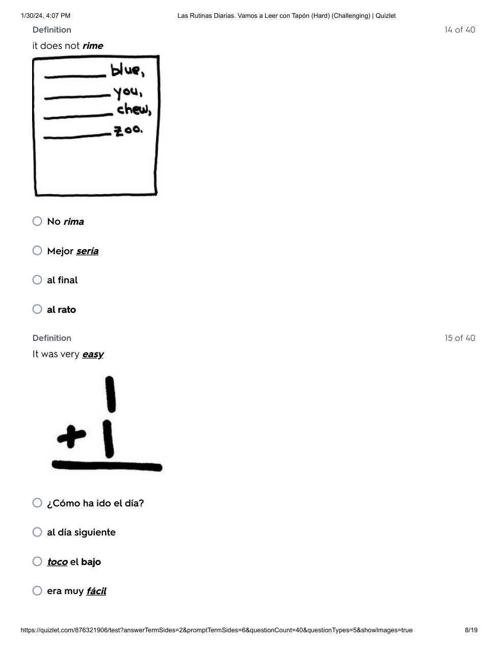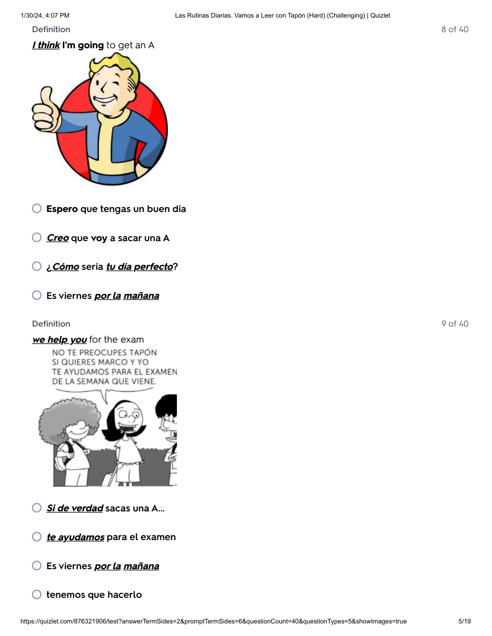era muy fácil | arrow_right_alt | I think I'm going to get an A |