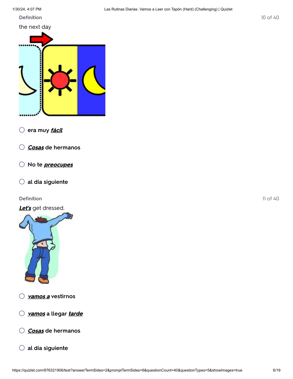 te ayudamos para el examen | arrow_right_alt | Let's get dressed. |