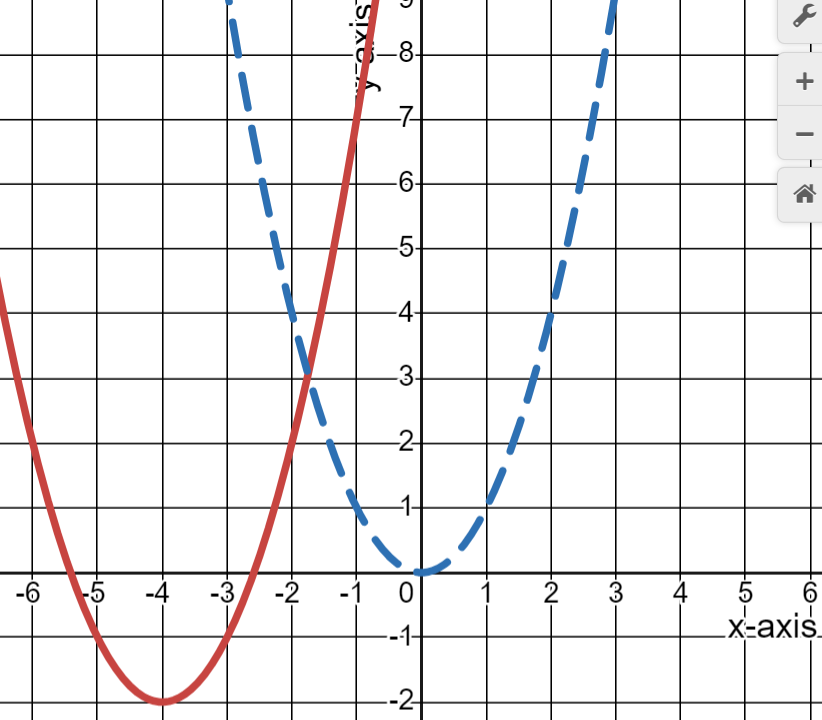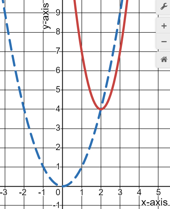 Given the parent function f(x)=(x)^{2}, write the equation of the transformed function in the form g(x)=a(x-h)^{2}+k.