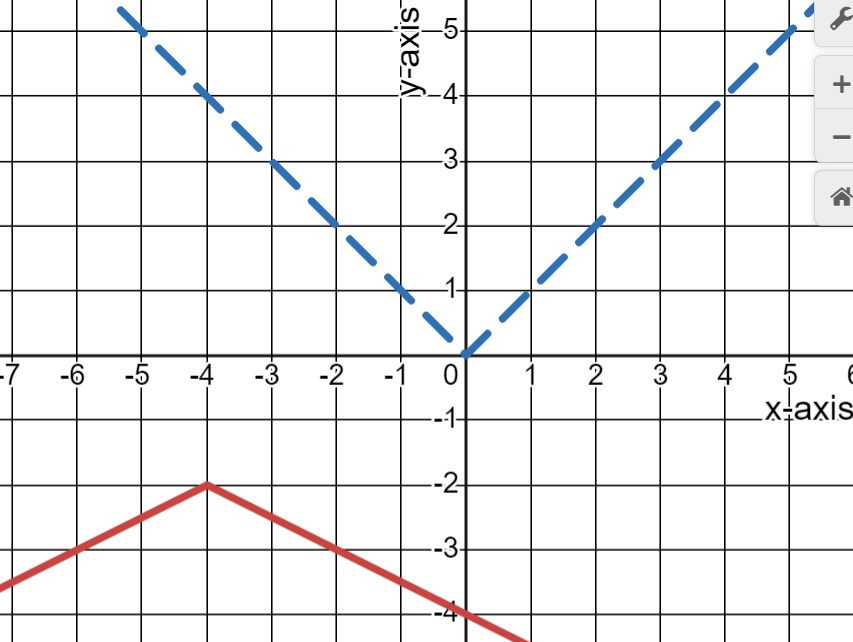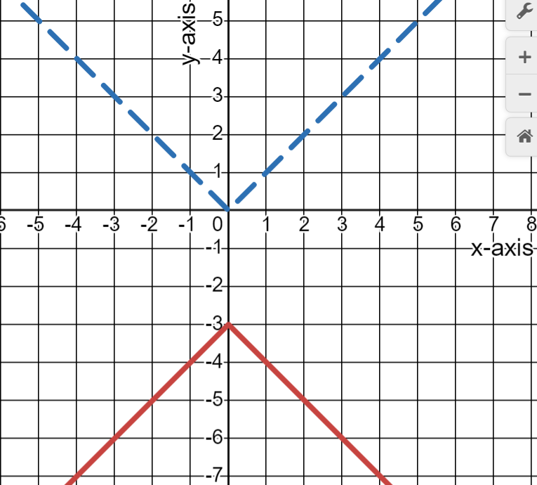 Given the parent function f(x)=|x|, write the equation of the transformed function in the form g(x)=a|x-h|+k.