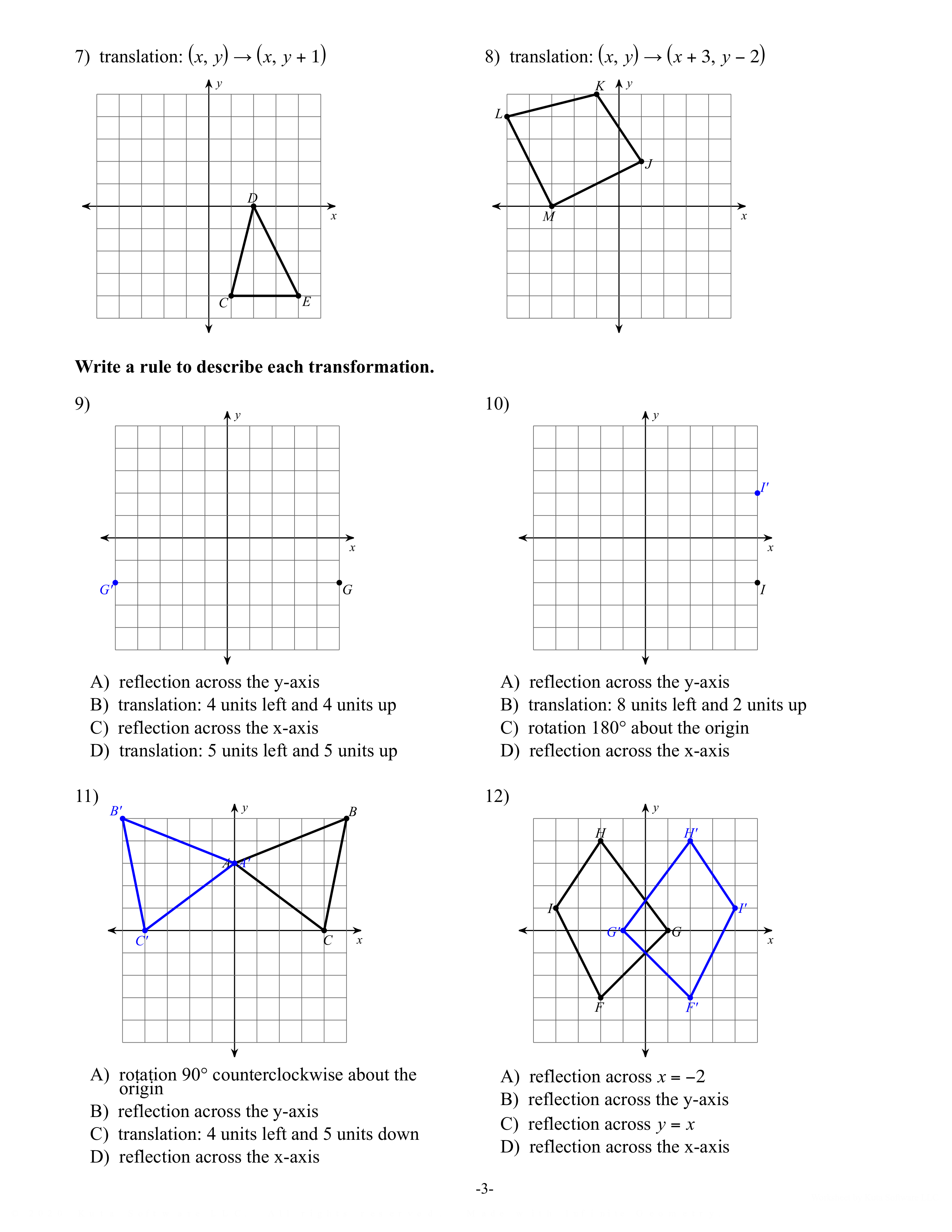Write a rule to describe each transformation.