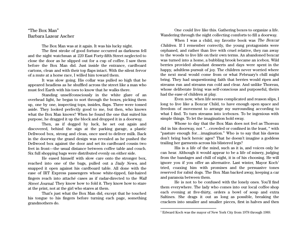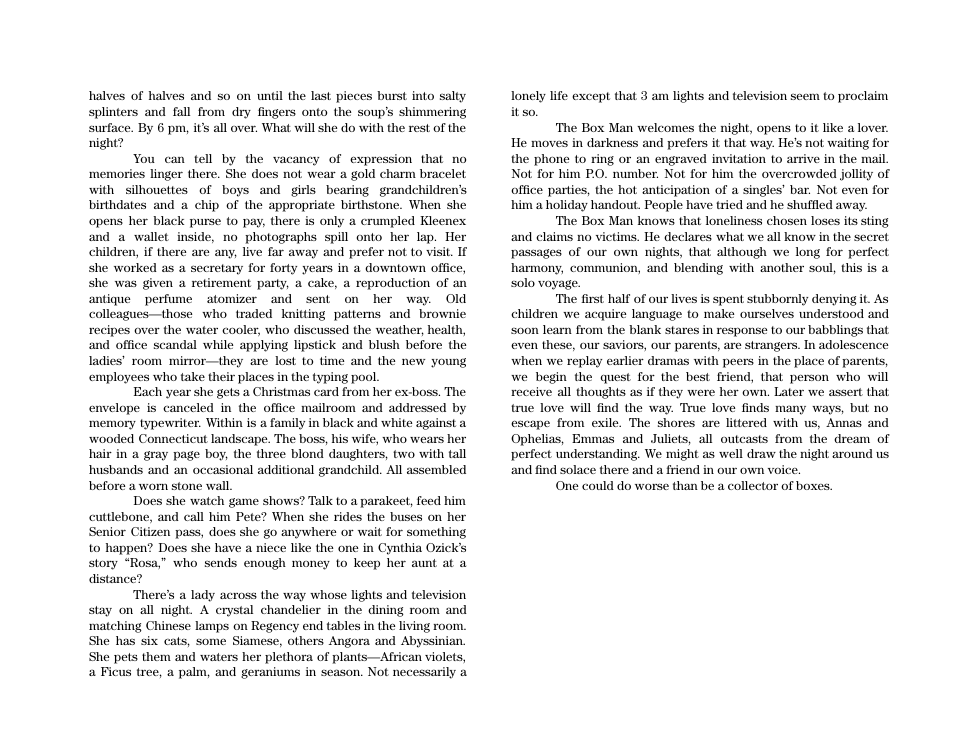 Does the Box Man believe that loneliness chosen loses its sting and claims no victims?