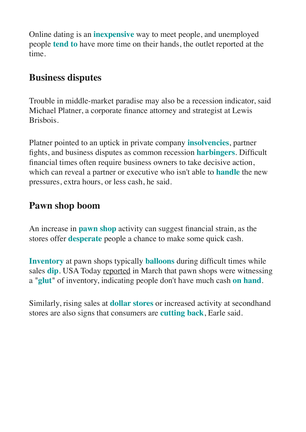 Recession Indicators Reading